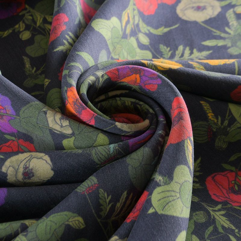 Шелк-вискоза 064-12174 пыльно-синий принтованный