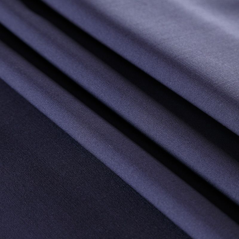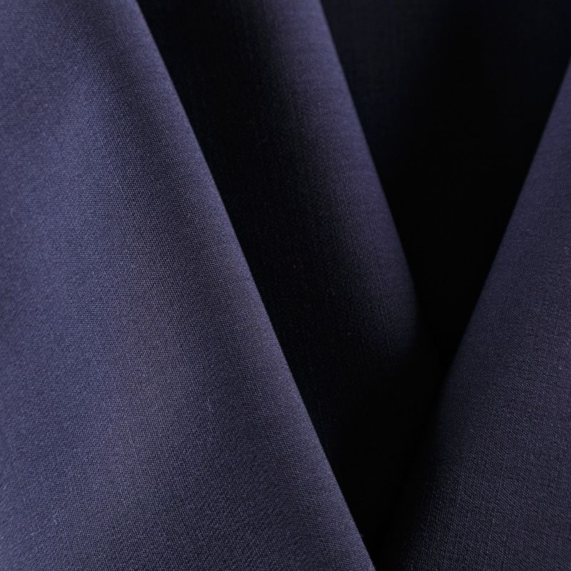 Итальянская фактурная шерсть темно-синего цвета. Ткань двойная, слои разделяются, достаточно пластичная, хорошо держит форму, тянется за счет эластана в составе. Прекрасно подойдет для пошива костюма, юбки, брюк, шорт, легкого пальто, жакета, платья прямого силуэта, жилета.