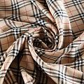 Костюмно-плательная итальянская шерсть средней плотности, мягкая, пластичная, хорошо драпируется и ниспадает. Очень теплая, уютная, не колется, в носке очень комфортная. Сочетание линий  черного, белого и бежевого цветов образуют сложную клетку тартан. Ткань прекрасно подойдет для пошива стильного платья прямого или расклешенного силуэта для сезона осень-зима, куртки-рубашки, юбки, костюмов, жакетов, брюк или шорт.
