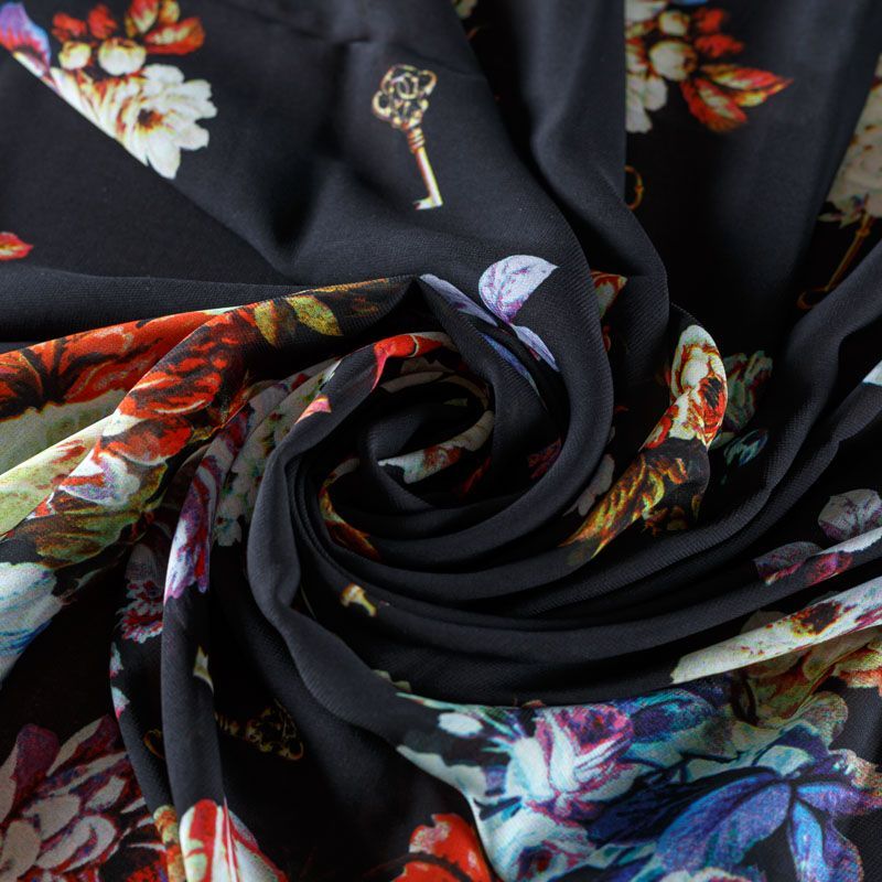 Шифон 068-08386 черный принтованный в Якутске