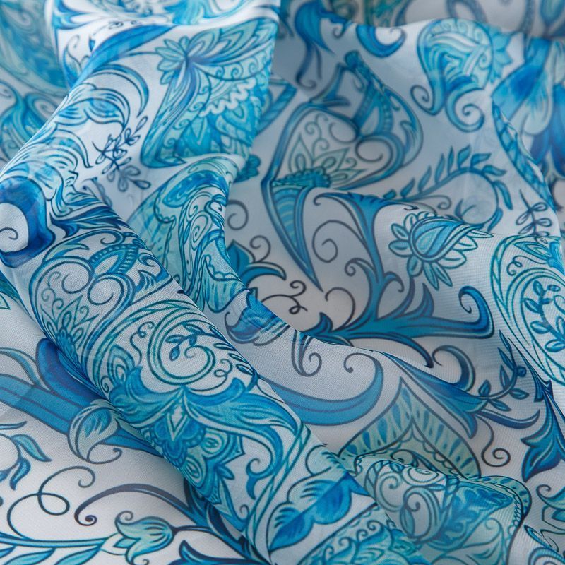 Шифон 068-17373 лазурно-голубой принтованный в Якутске
