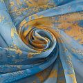 Воздушный, летящий, эффектный шифон в желто-голубых оттенкахс абстрактным принтом. Ткань матовая, мягкая, пластичная, не тянется, достаточно прозрачная, не статичная. Подойдет для пошива фееричного платья, сарафана, туники, блузки, пляжной одежды.