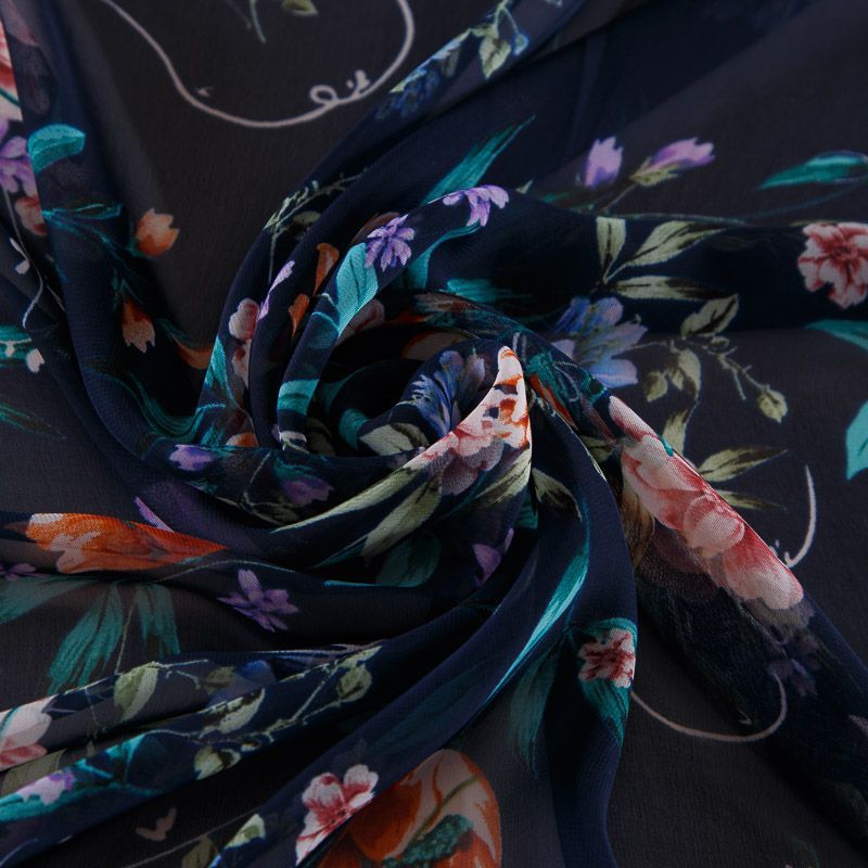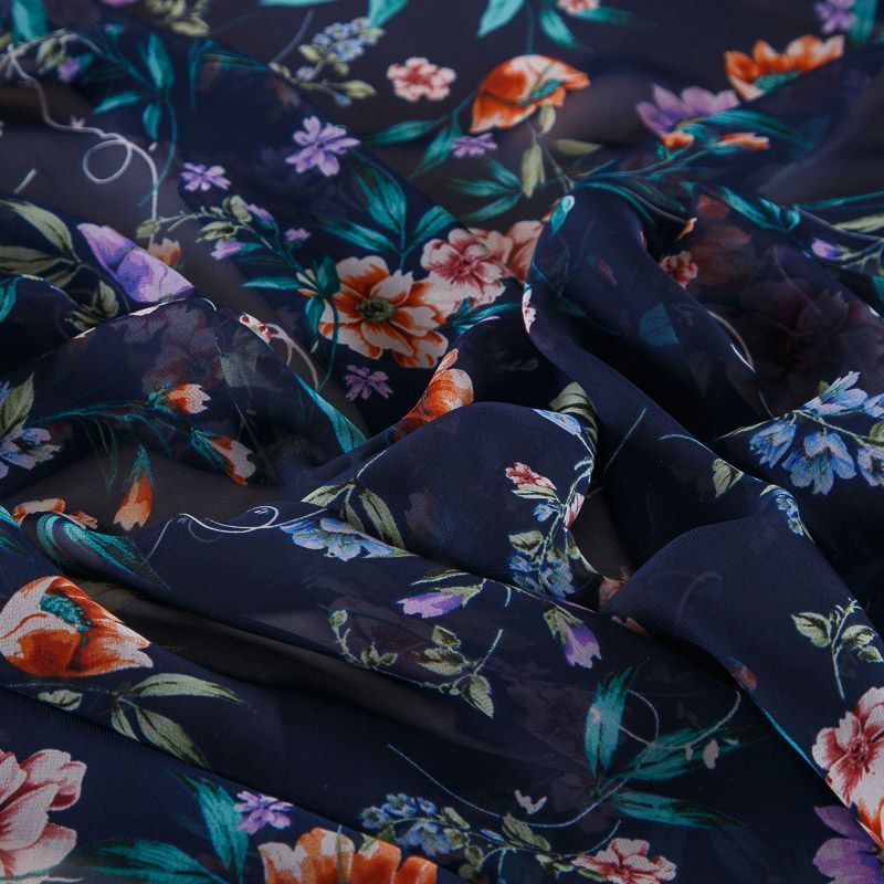 Шифон 068-17424 темно-синий принтованный в Якутске