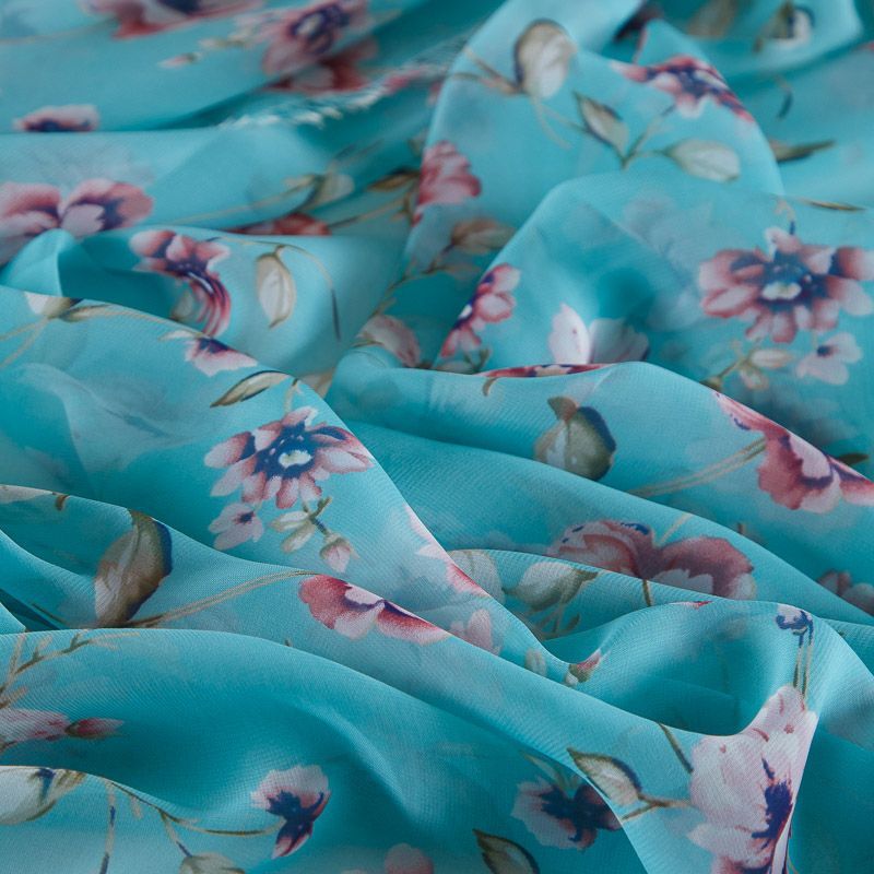 Шифон 068-17425 бирюзовый принтованный в Якутске