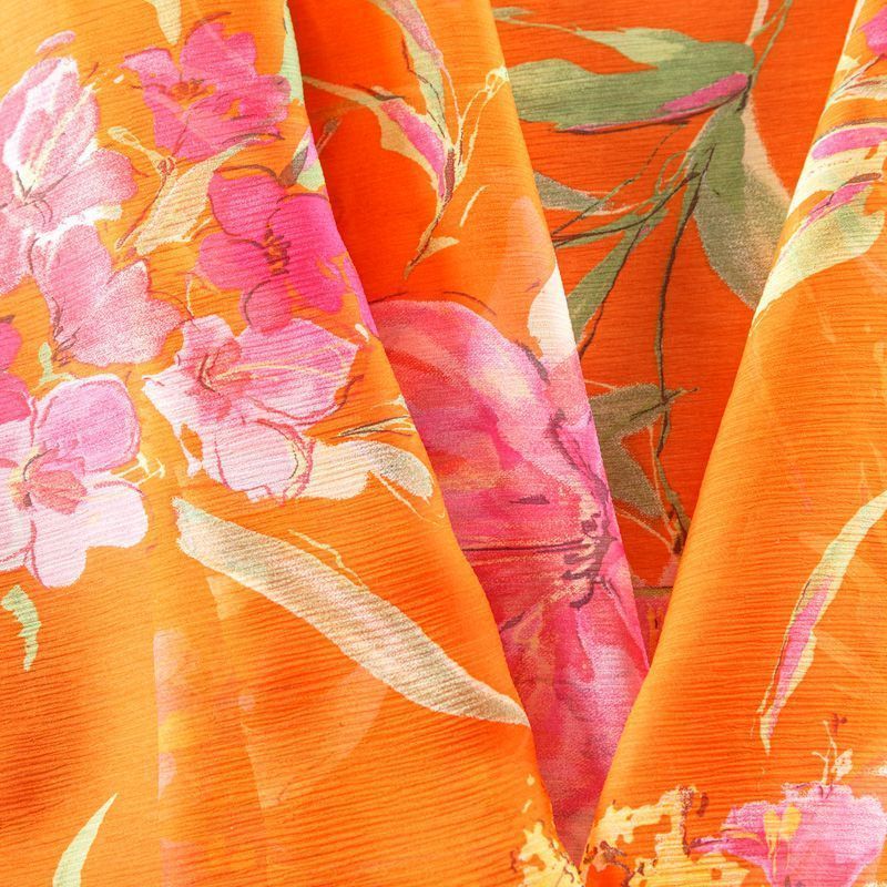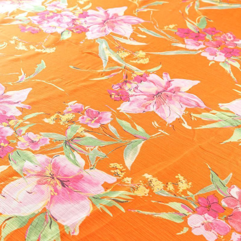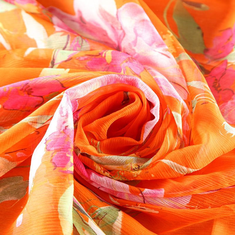 Шифон натуральный К02-426 апельсиновый принтованный в Якутске