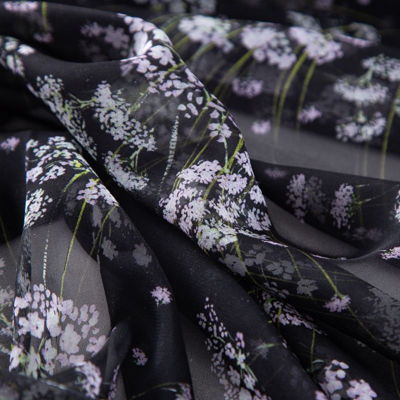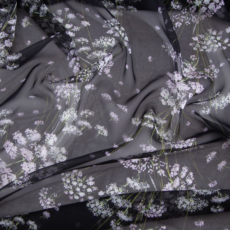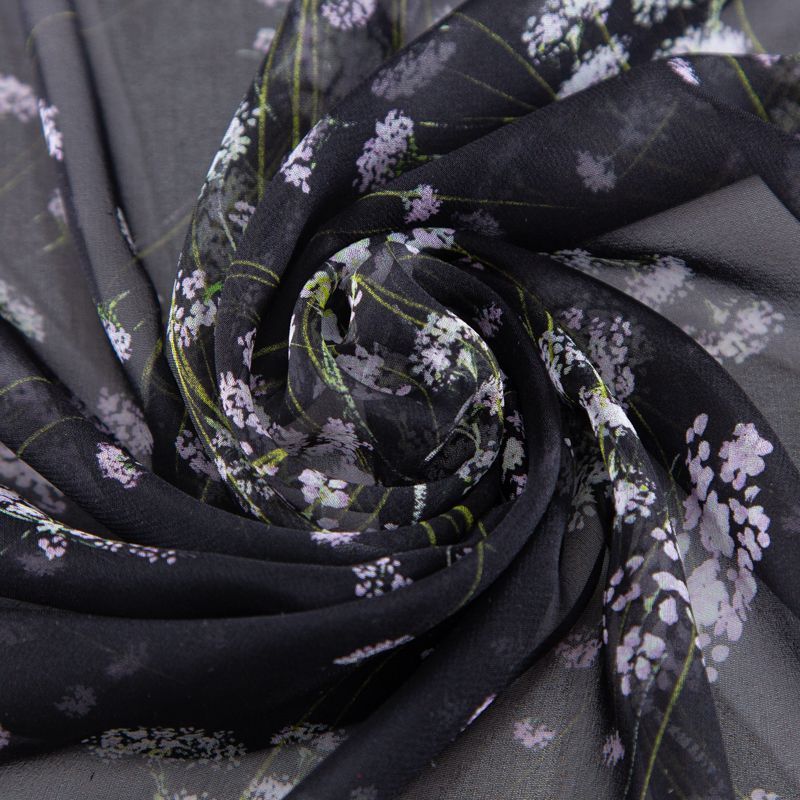 Шифон шелковый 027-20194 черный принтованный в Якутске