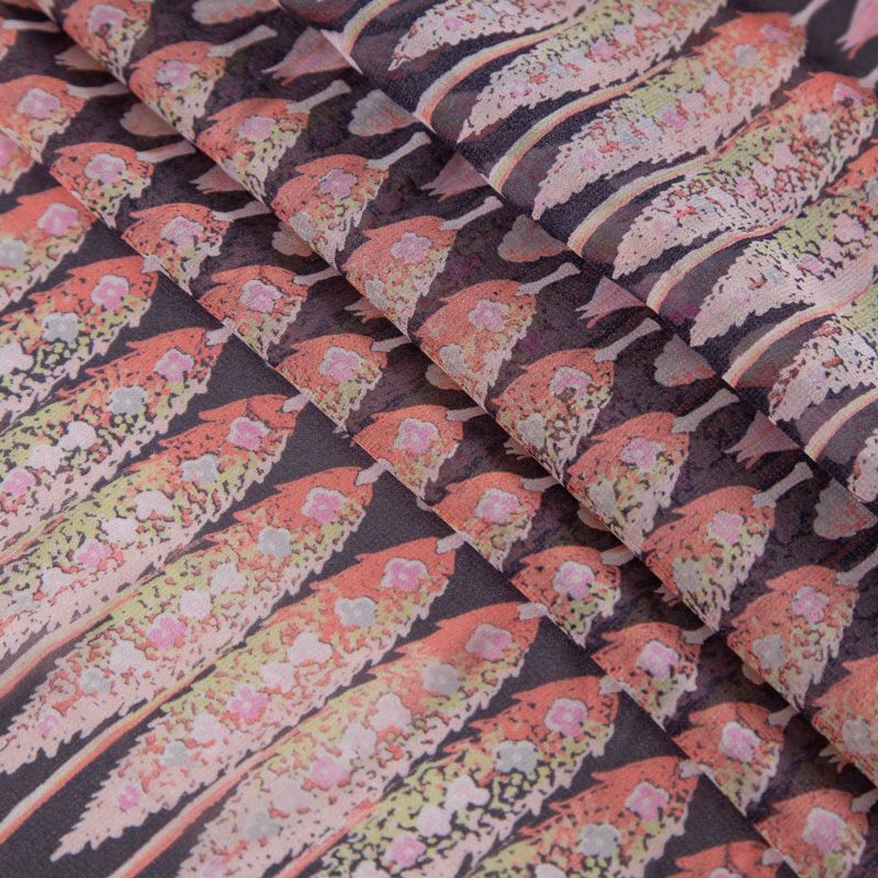 Шифон шелковый 027-20195 черный мультиколор