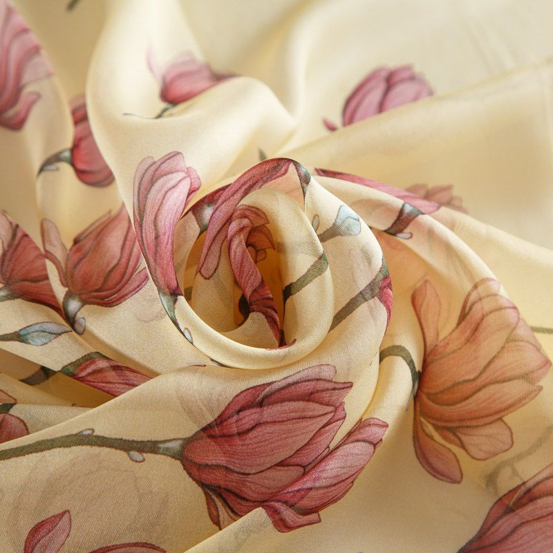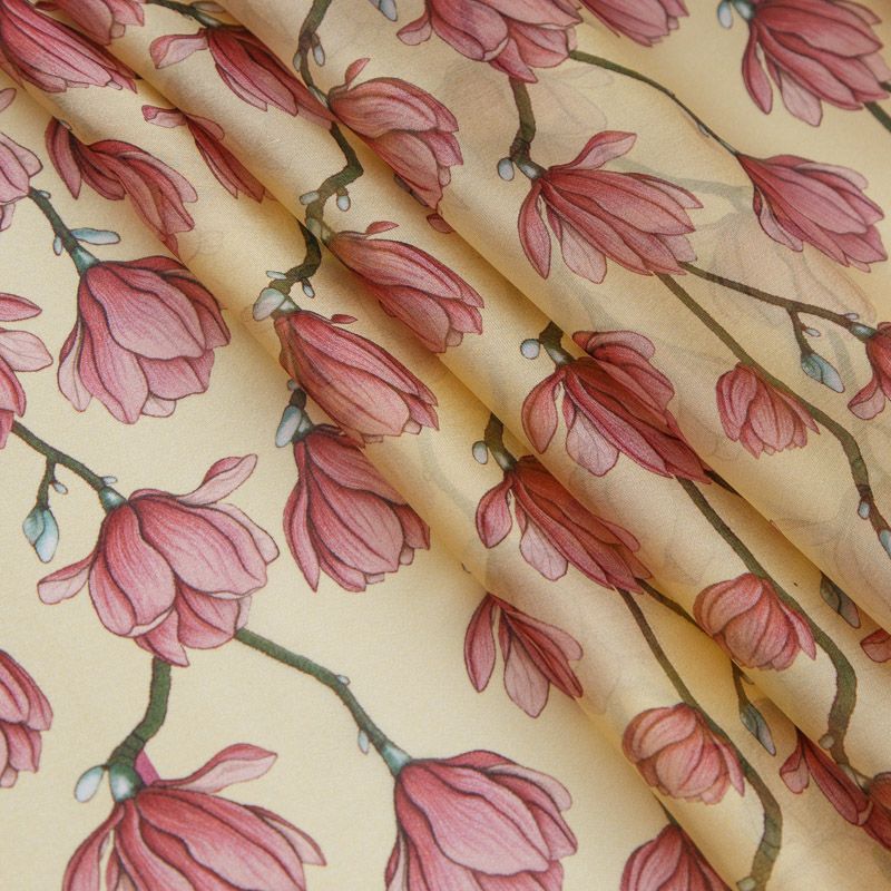 Шифон шелковый 068-17093 разбеленный желтый принтованный