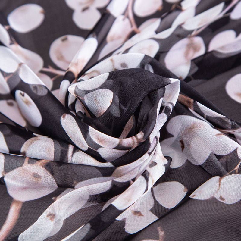 Шифон шелковый 068-20075 черный принтованный в Якутске