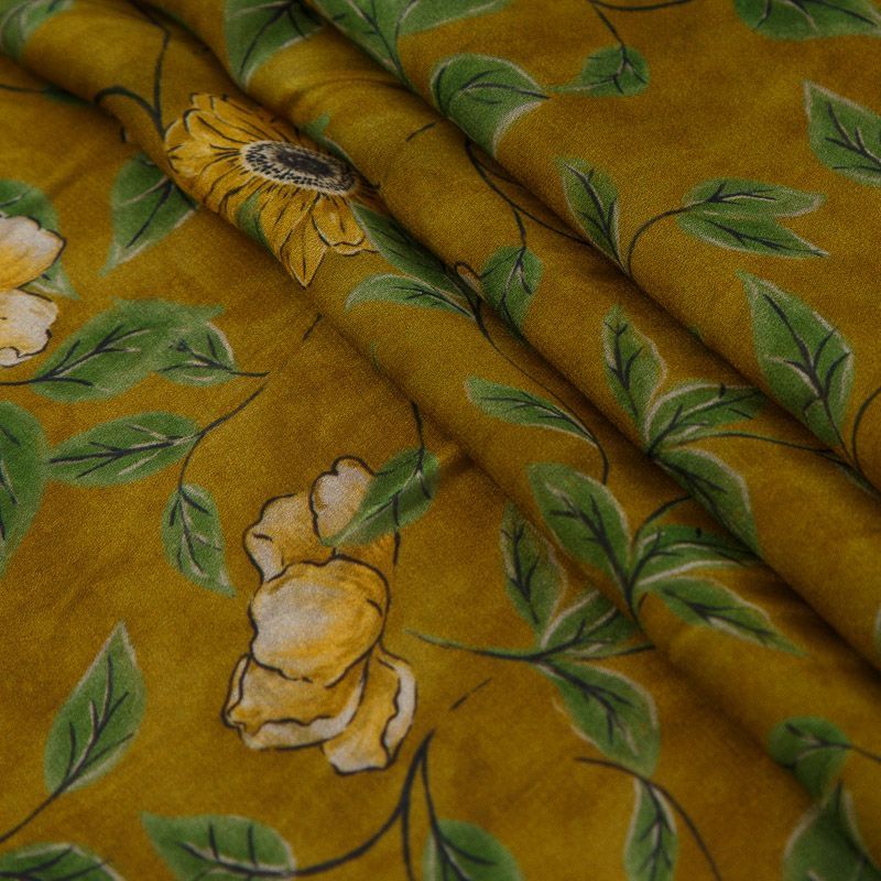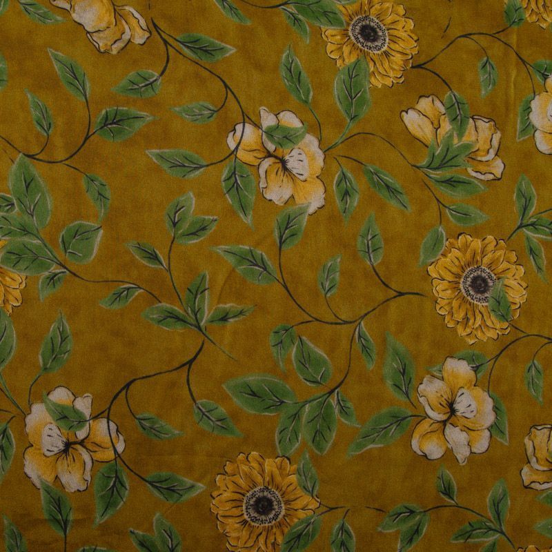 Шифон вискозный 068-16201 горчичный принтованный