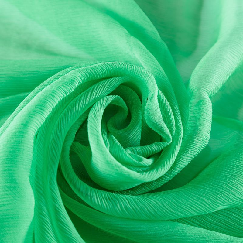 Воздушная шелковая жатая ткань, легкая, тонкая, полупрозрачная. На ощупь шифон-жатка очень мягкий и приятный, не тянется. Подойдет для пошива тончайших воздушных блуз, изумительных вечерних и летних платьев в пол, коротких коктейльных платьев, топов, блузок, туник и элегантных шарфов.
