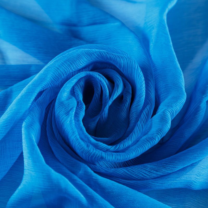 Воздушная шелковая жатая ткань, легкая, тонкая, полупрозрачная. На ощупь шифон-жатка очень мягкий и приятный, не тянется. Подойдет для пошива тончайших воздушных блуз, изумительных вечерних и летних платьев в пол, коротких коктейльных платьев, топов, блузок, туник и элегантных шарфов.