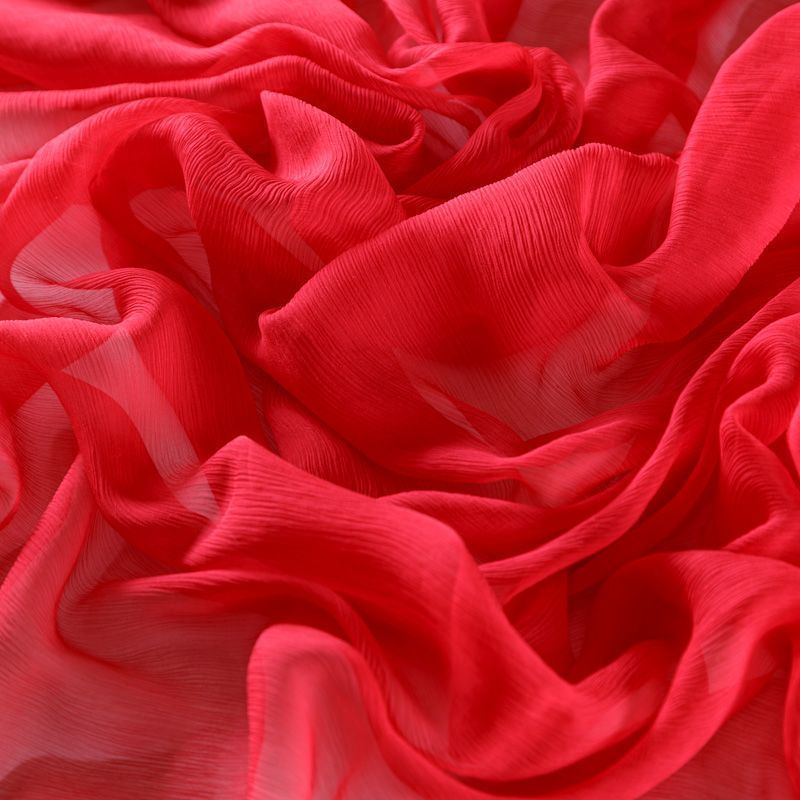 Воздушная шелковая жатая ткань, легкая, тонкая, полупрозрачная. На ощупь шифон-жатка очень мягкий и приятный, не тянется. Подойдет для пошива тончайших воздушных блуз, изумительных вечерних и летних платьев в пол, коротких коктейльных платьев, топов, блузок, туник и элегантных шарфов.