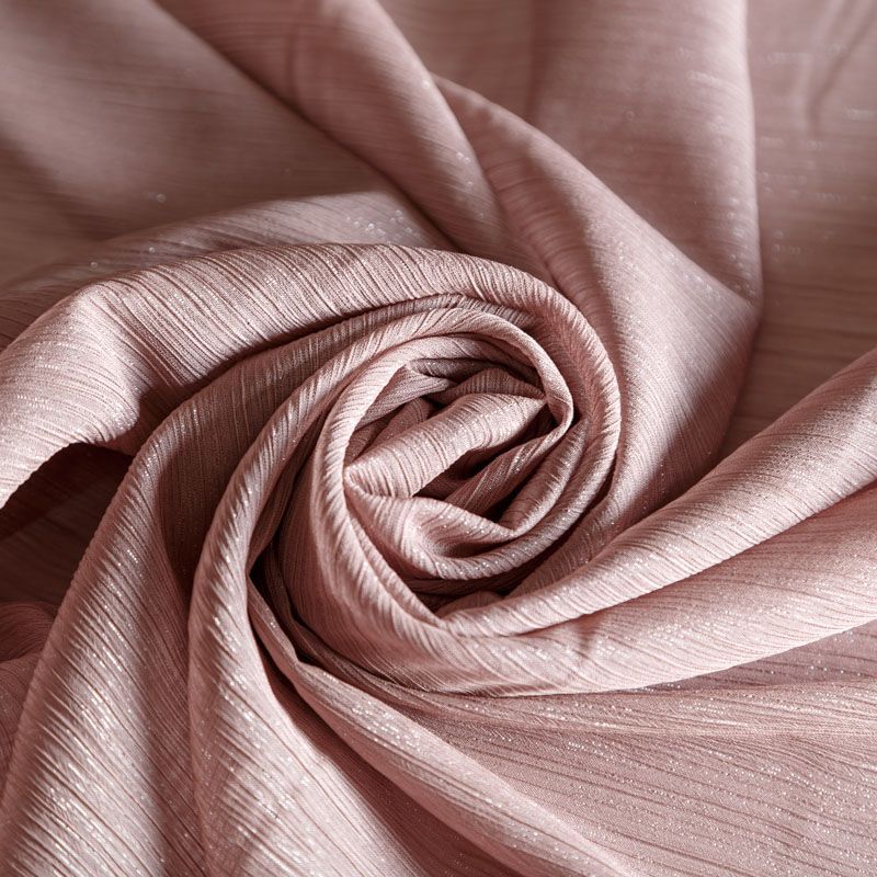 Воздушная жатая ткань с прозрачной люрексной нитью, легкая, тонкая, полупрозрачная. Не тянется и хорошо сохраняет форму. На ощупь шифон-жатка очень мягкий и приятный. Подойдет для пошива тончайших воздушных блуз, изумительных вечерних и летних платьев в пол, коротких коктейльных платьев, топов, блузок, туник и элегантных шарфов.