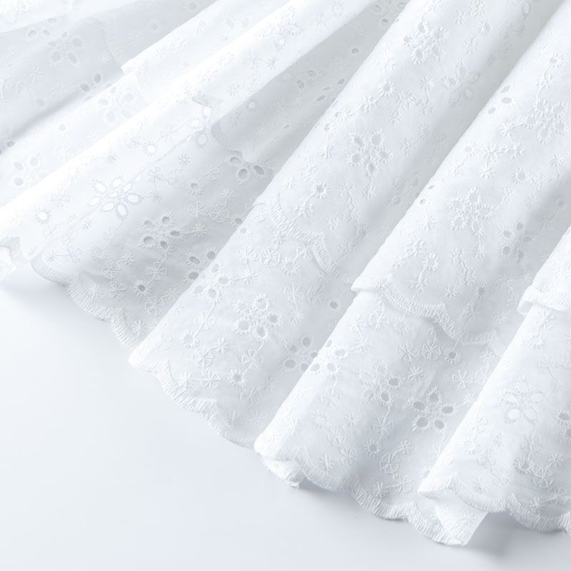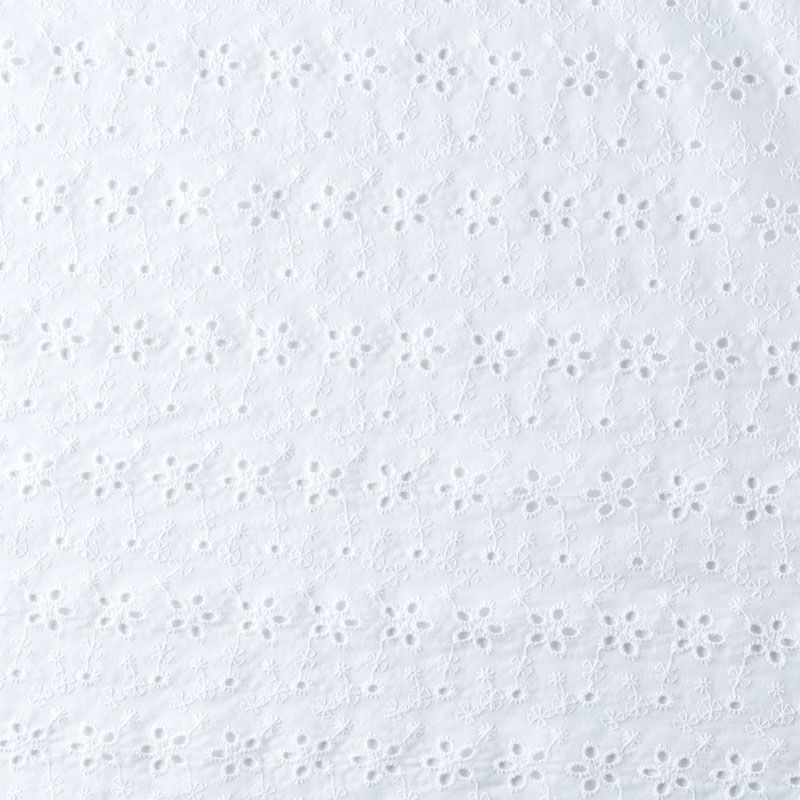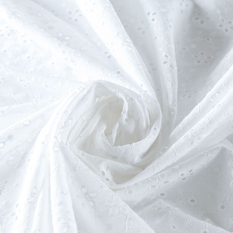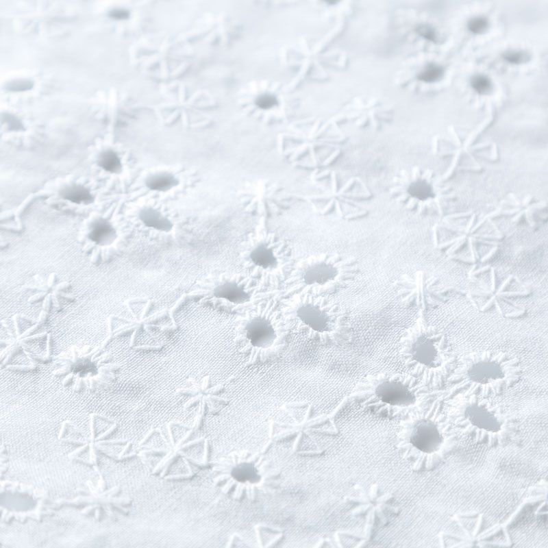Итальянское шитье на белоснежной хлопковой основе с цветочной элегантной вышивкой,  расположеннной по всему полотну. Ткань мягкая, легкая, пластичная, приятная на ощупь, просвечивает, потребуется подклад. Обе кромки ткани оформлены фигурными фестонами. Идеально подойдет для пошива рубашки, блузы, топа в воланами, туники, платья, сарафана, юбки, шорт.
