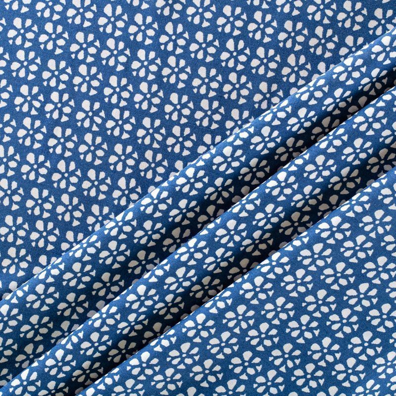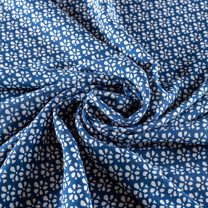 Плательно-блузочный штапель от итальнского дизайнера с мелким принтом в виде цветочков на синем фоне. Мягкий, тонкий, нежный, пластичный, приятный на ощупь, хорошо драпируется, практичный. Подойдет для пошива платья, топа, блузки, рубашки, юбки, летних брюк.