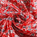 Плательно-блузочный штапель с не крупным цветочным принтом на красном фоне. Мягкий, тонкий, нежный, пластичный, приятный на ощупь, хорошо драпируется, практичный. Подойдет для пошива платья, топа, блузки, рубашки, юбки, летних брюк.