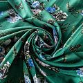 Плательно-блузочный штапель с цветочным принтом на зеленом фоне холодного оттенка. Мягкий, тонкий, нежный, пластичный, приятный на ощупь, хорошо драпируется, практичный. Подойдет для пошива платья, топа, блузки, рубашки, юбки, летних брюк.