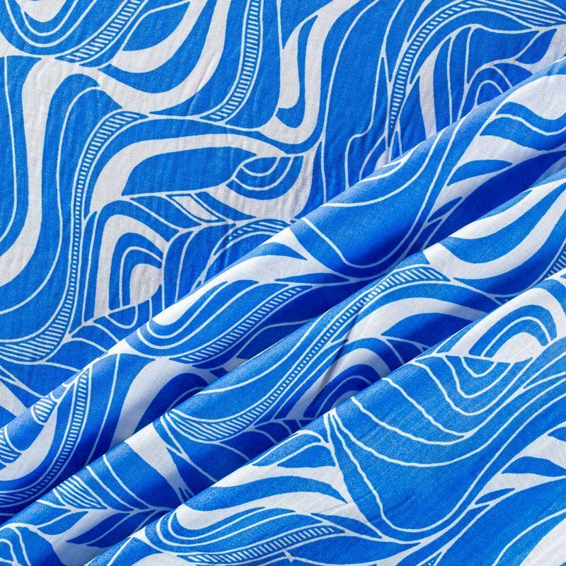 Плательно-блузочный штапель с абстрактным принтом на белом фоне. Мягкий, тонкий, нежный, пластичный, приятный на ощупь, хорошо драпируется, практичный. Подойдет для пошива платья, топа, блузки, рубашки, юбки, летних брюк.