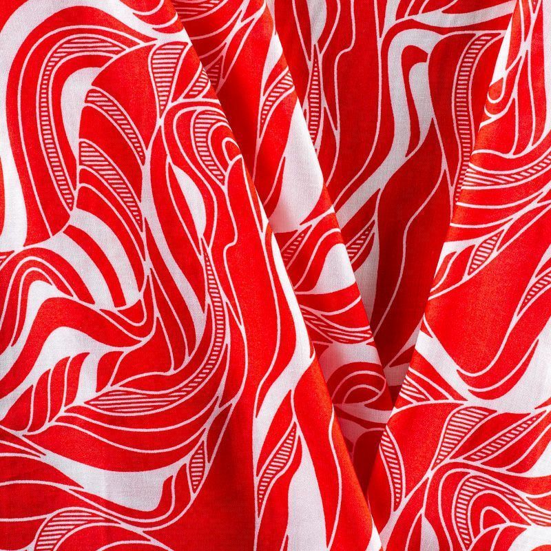 Плательно-блузочный штапель с абстрактным принтом на белом фоне. Мягкий, тонкий, нежный, пластичный, приятный на ощупь, хорошо драпируется, практичный. Подойдет для пошива платья, топа, блузки, рубашки, юбки, летних брюк.