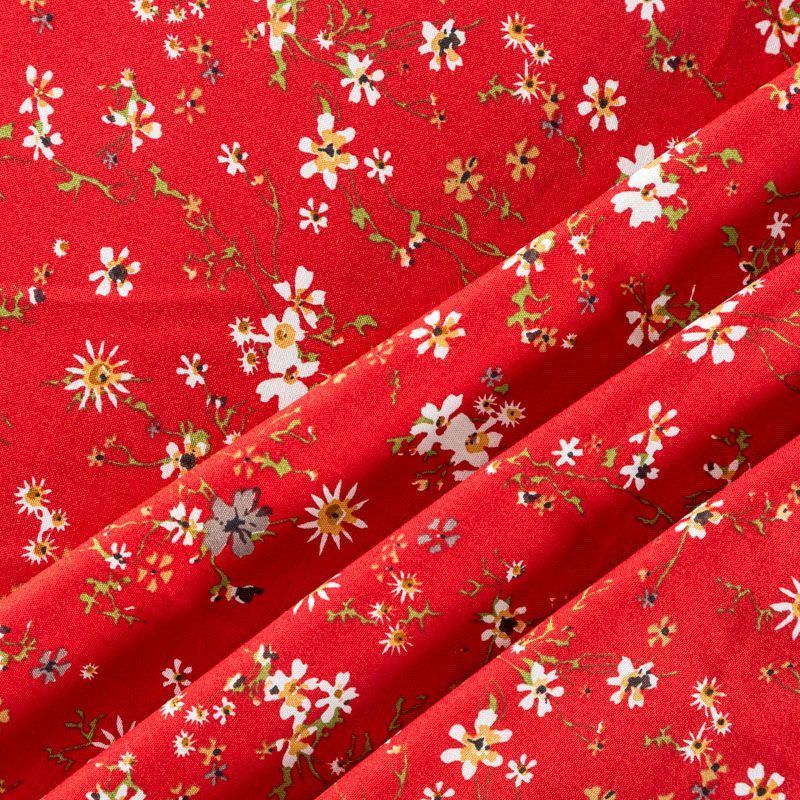 Плательно-блузочный штапель с мелким растительным принтом на красном фоне с терракотовым оттенком. Мягкий, тонкий, нежный, пластичный, приятный на ощупь, хорошо драпируется, практичный. Подойдет для пошива платья, топа, блузки, рубашки, юбки, летних брюк, комбинезона.