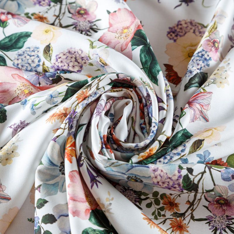 Итальянский плательно-блузочный штапель с летним цветочным принтом. Ткань мягкая, тонкая, нежная и пластичная, приятная на ощупь, хорошо драпируется, практичная. Подойдет для пошива платья, топа, блузки, рубашки, юбки, летних брюк.