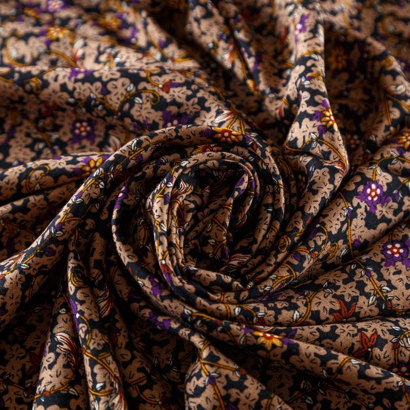 Плательно-блузочный штапель с растительным принтом. Мягкий, тонкий, нежный, пластичный, приятный на ощупь, хорошо драпируется, практичный. Подойдет для пошива платья, топа, блузки, рубашки, юбки, летних брюк, комбинезона.