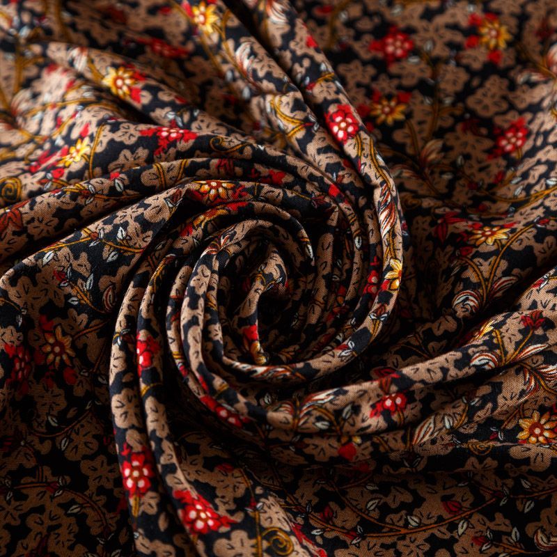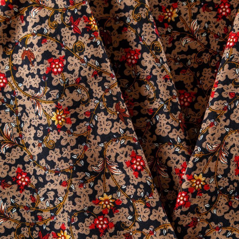 Плательно-блузочный штапель с растительным принтом. Мягкий, тонкий, нежный, пластичный, приятный на ощупь, хорошо драпируется, практичный. Подойдет для пошива платья, топа, блузки, рубашки, юбки, летних брюк, комбинезона.