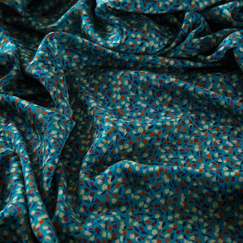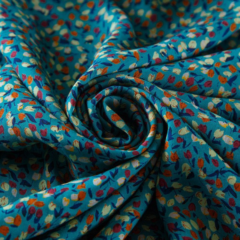 Штапель 069-13566 темно-бирюзовый принтованный в Якутске