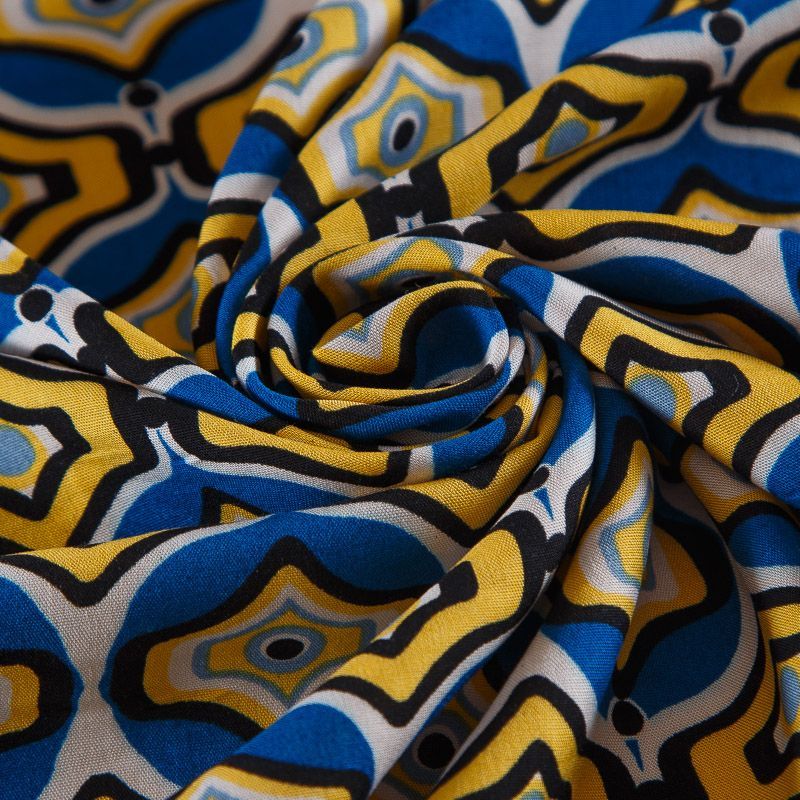 Штапель 069-17536 желто-синий принтованный в Якутске