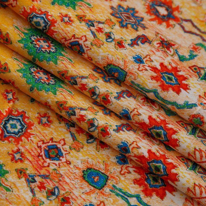 Штапель 069-17637 шафрановый принтованный в Якутске