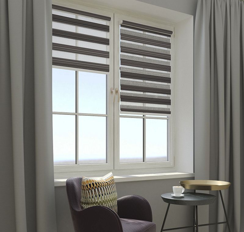 Рулонная штора День-Ночь в отличии от обычных рулонных штор состоит из двойной ткани, которая создает чередование прозрачного и плотного материала. За счет смещения этих слоев относительно друг друга, можно регулировать количество света. Полотнище само по себе декоративно и необычно - вы сможете выбрать себе шторы для любого интерьера из разнообразных расцветок и дизайнов. Одной шторой день-ночь вы замените и традиционную тюль, и портьеры. Преимущества: экономят пространство; имеют пылеотталкивающую пропитку - вам не придется их стирать, развешивать. В крайнем случае можно протереть влажной губкой. При проветривании хорошо пропускают воздух. Механизм управления цепочечный. Установка шторы возможна на раму, на стену и в проем.