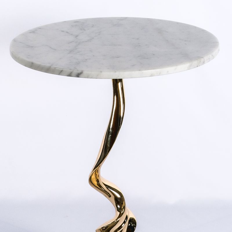 Столик кофейный/журнальный. Высота 50 см, диаметр столешницы 40 см. Подстолье выполнено из металла - золото хром, столешница - камень.