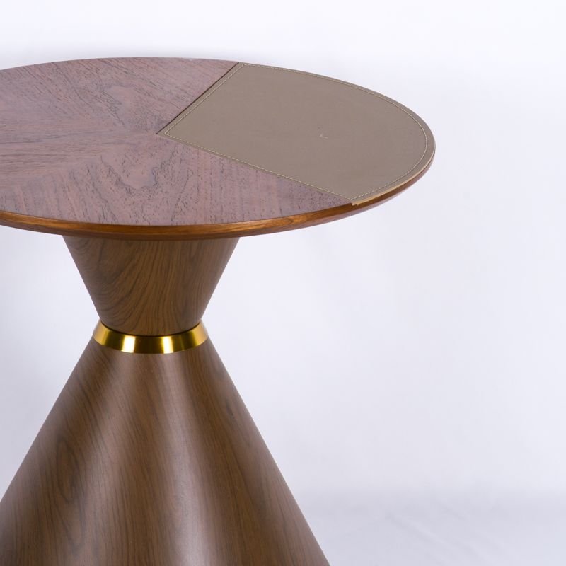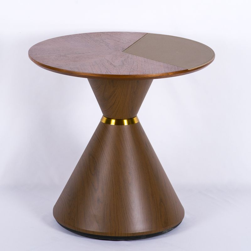 Столик кофейный/журнальный. Высота 50 см, диаметр столешницы 50 см. Подстолье выполнено из металла, отелка МДФ, столнешница - МДФ, экокожа.