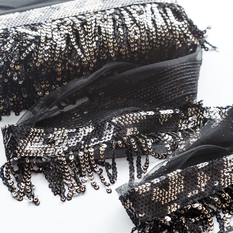 Тесьма декоративная 140 мм с пайетками PA0827 черный/серебро