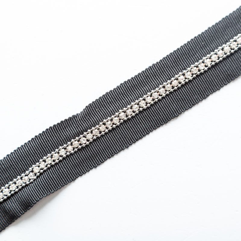 Тесьма декоративная 25 мм со стразами PA0740 черный