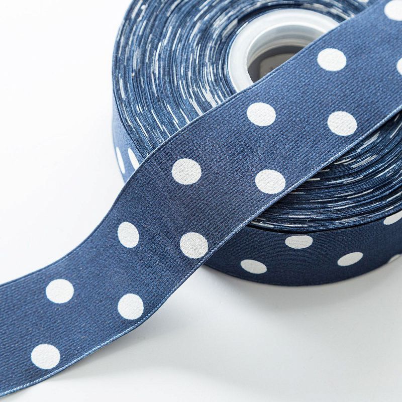 Тесьма декоративная 40 мм белый горох 590944 синий в Якутске