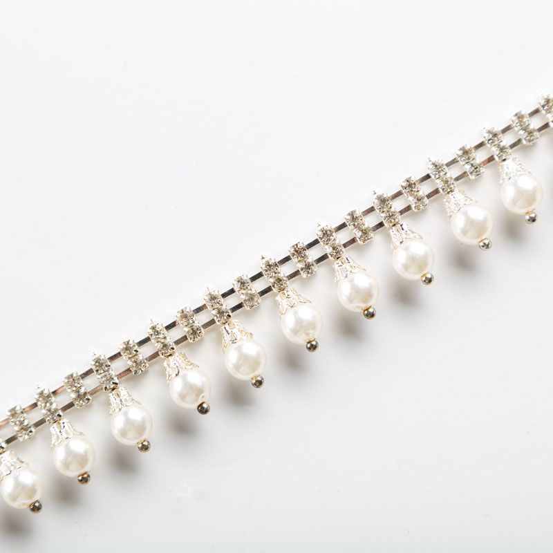 Декоративная тесьма на жесткой основе со стразами и жемчугом используется для декора и отделки одежды, создания украшений и т.д.