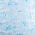 Тик приятного голубого оттенка с нежным воздушным принтом средней плотности. Используется для пошива наперников. Износостойкий, может использоваться для изготовления других изделий. Ткань подходит для любых наполнителей, искусственных и натуральных.