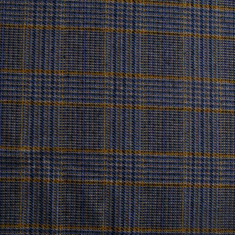 Итальянская костюмно-плательная смесовая шерсть средней плотности, не сухая, пластичная, приятная на ощупь, формоустойчива, не мнется, хорошо драпируется. Красивая клетка тартан образована за счет сочетания полос синего, голубого, желтого и песочного оттенков. Ткань отлично подойдет на костюм, жилет, жакет, легкое пальто, юбку, брюки, плате, сарафан, шорты.