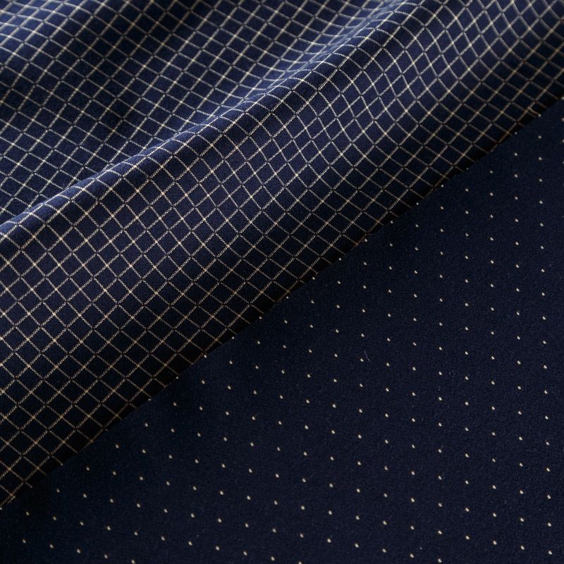 Оригинальная двухсторонняя ткань с принтом клетка с одной стороны и мелким геометрическим рисунком в виде молочных точек - с другой. Материал плотный, но не толстый, хорошо драпируется, тянется за счет эластана в составе, имеет мягкую поверхность с небольшими ворсинками. Прекрасно подходит для пошива платьев, сарафанов, юбок, брюк, жакетов.