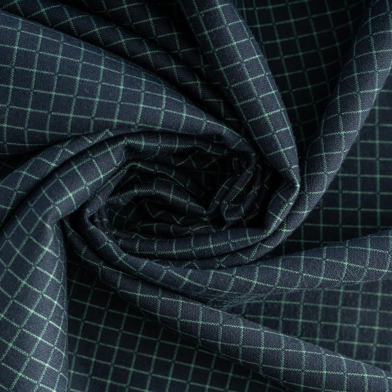 Оригинальная двухсторонняя ткань с принтом клетка с одной стороны и мелким геометрическим рисунком в виде зеленых точек - с другой. Материал плотный, но не толстый, хорошо драпируется, имеет мягкую поверхность с небольшими ворсинками. Прекрасно подходит для пошива платьев, сарафанов, юбок, брюк, жакетов.