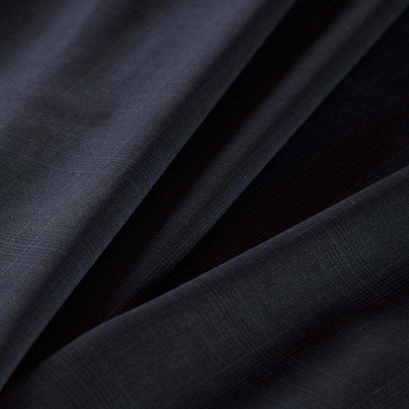 Итальяская костюмно-плательная шерсть с эластаном шикарного качества в черном оттенке в едва заметную элегантную клетку. Ткань средней плотности, тонкая, очень приятная на ощупь, драпируется в слегка держащие форму складки, с полотняным переплетением, тянется. Подойдет для всех видов изделий - платьев, сарафанов, модных жакетов, жилетов, брючных и юбочных костюмов, кюлотов, брюк-палаццо, юбок различных фасонов.