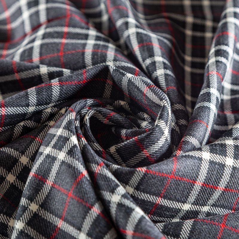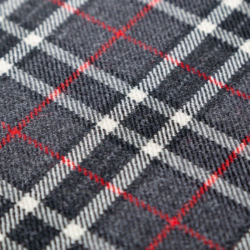 Итальянская костюмная шерсть средней плотности, мягкая и приятная на ощупь, формоустойчива, хорошо драпируется и образует мягкие складки. Сочетание линий графитового, красного и белого цветов образует сложную красивую клетку тартан. Ткань отлично подойдет на костюмы, юбки, брюки, платья, жакеты, для школьной формы.