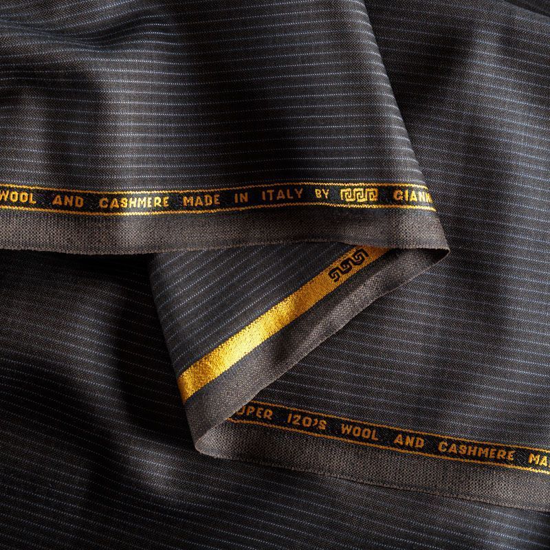 Костюмно-плательная ткань средней плотности, с добавлением кашемира, приятная и мягкая на ощупь, имеет фактурную поверхность в "елочку" с контрастной тонкой полоской молочного оттенка, направление - вдоль кромки. Прекрасно подойдет для пошива брюк-палацио, жакета, платья по фигуре, сарафана, классического мужского или женского костюма.