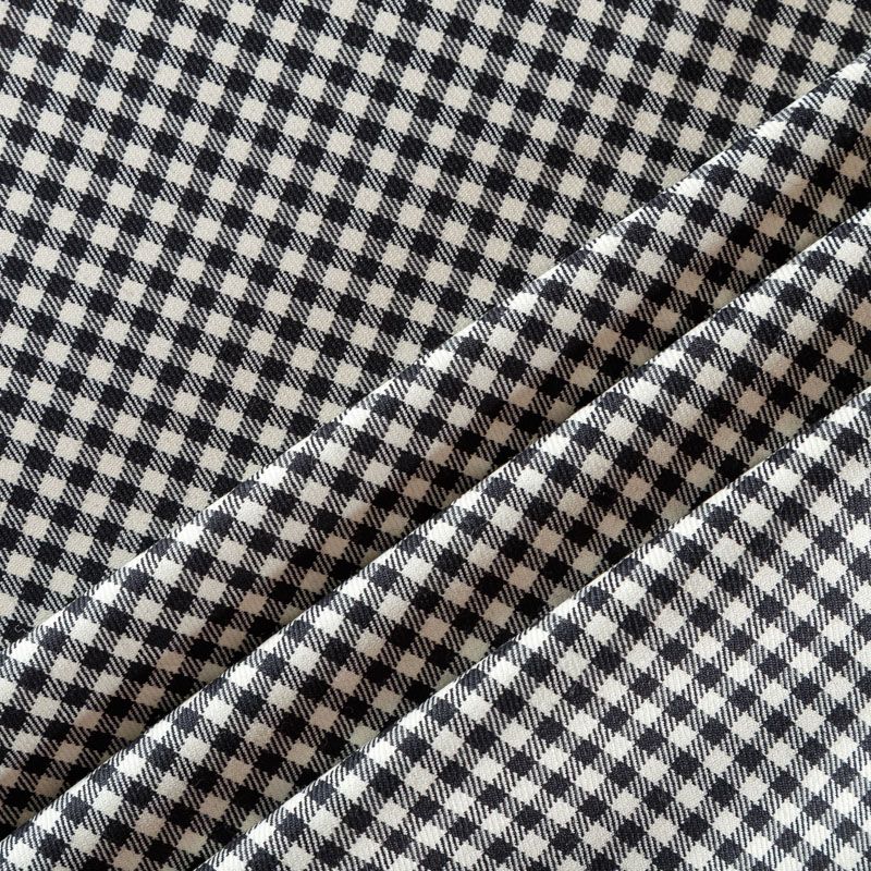 Итальянская костюмная шерсть в миниатюрную клеточку черного и приглушенно-белого цвета. Ткань пластичная, хорошо драпируется, не просвечивает, мягкая и комфортная в носке. Подойдет для пошива костюма, платья, юбки, жакета, жилета, брюк или шорт.