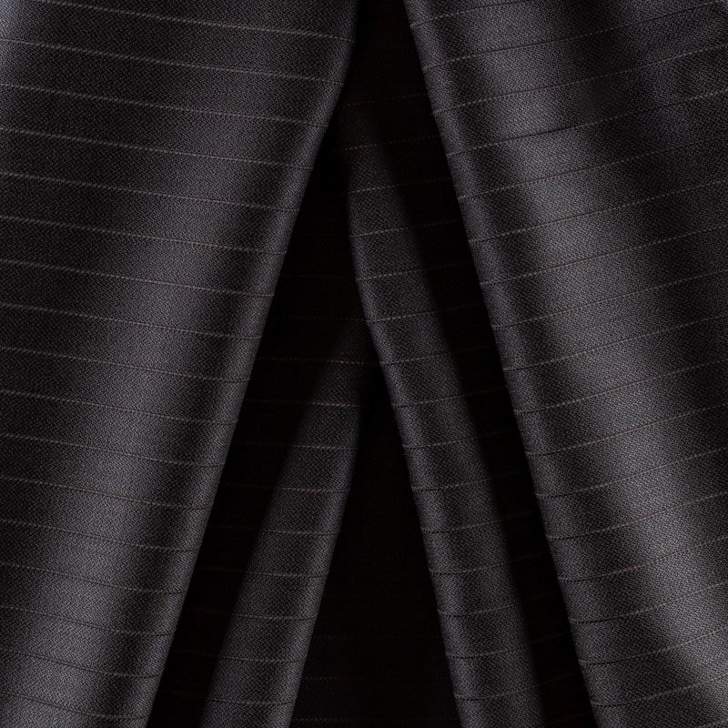 Костюмно-плательная ткань средней плотности, немного суховата, приятная на ощупь. На черном фоне очень тонкая полоска серого оттенка, направление - вдоль кромки. Прекрасно подойдет для пошива брюк-палацио, жакета, платья по фигуре, сарафана, классического мужского или женского костюма.