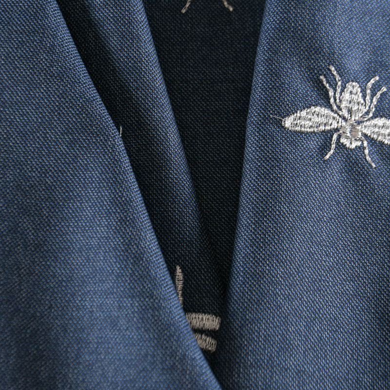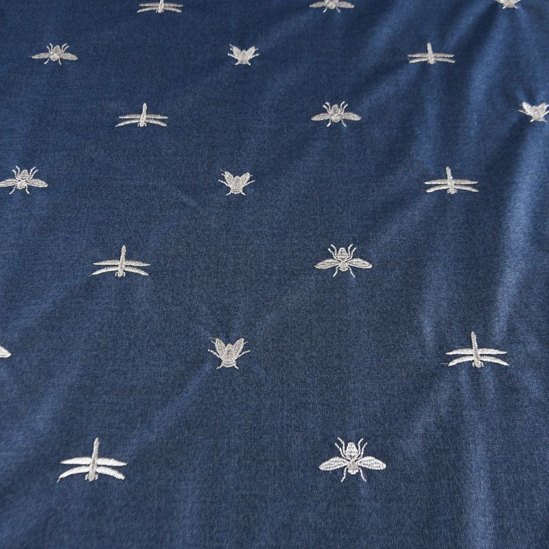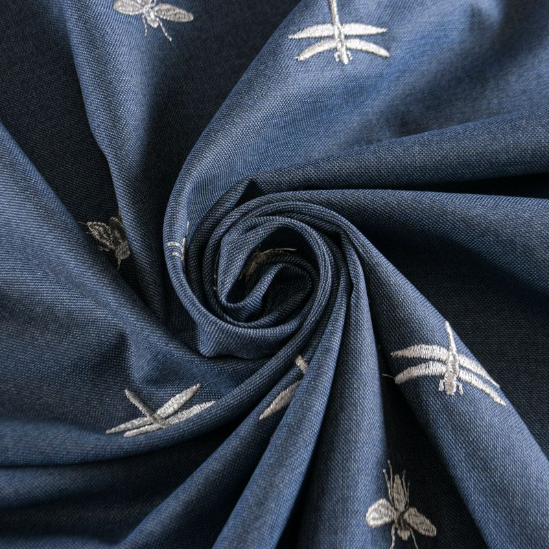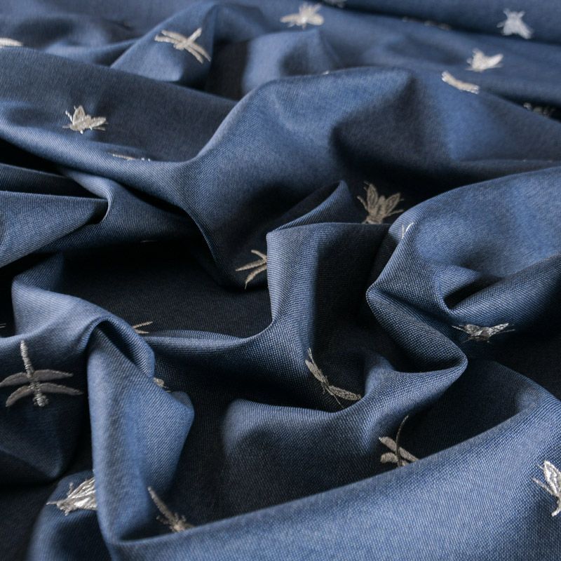 Ткань костюмная с вышивкой 025-12277 синий деним