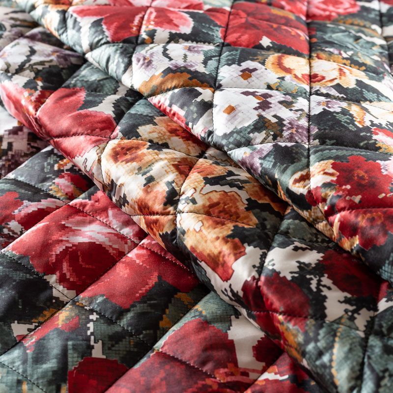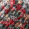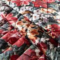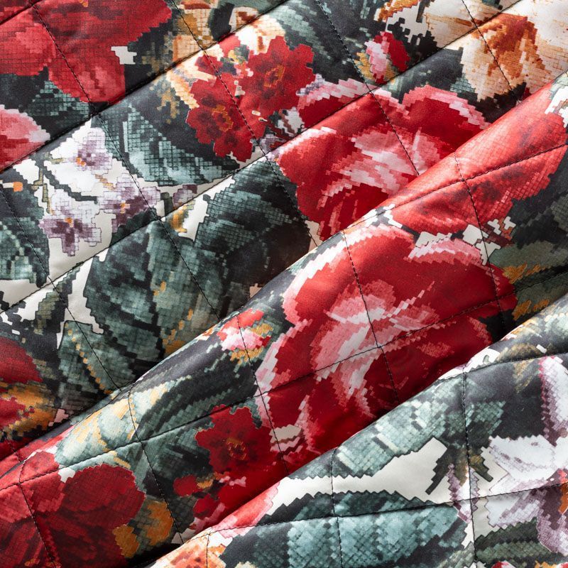 Трехслойная итальянская курточная ткань молочного оттенка с насыщенным и ярким цветочным принтом, выполненным в пиксельном технике. Материал простеган не крупными ромбами размером 3х3 см. Нижний слой черного цвета, заменяет подклад, средний слой - синтепон, верхний слой - красочный матовый полиэстер, напоминающий болонь. Ткань легкая, пластичная, хорошо драпируется. Прекрасно подойдет для  пошива легких пальто, курток, бомберов, жилетов, накидок-кейпов, объемных сумок, одежды для домашних питомцев, туристического снаряжения.