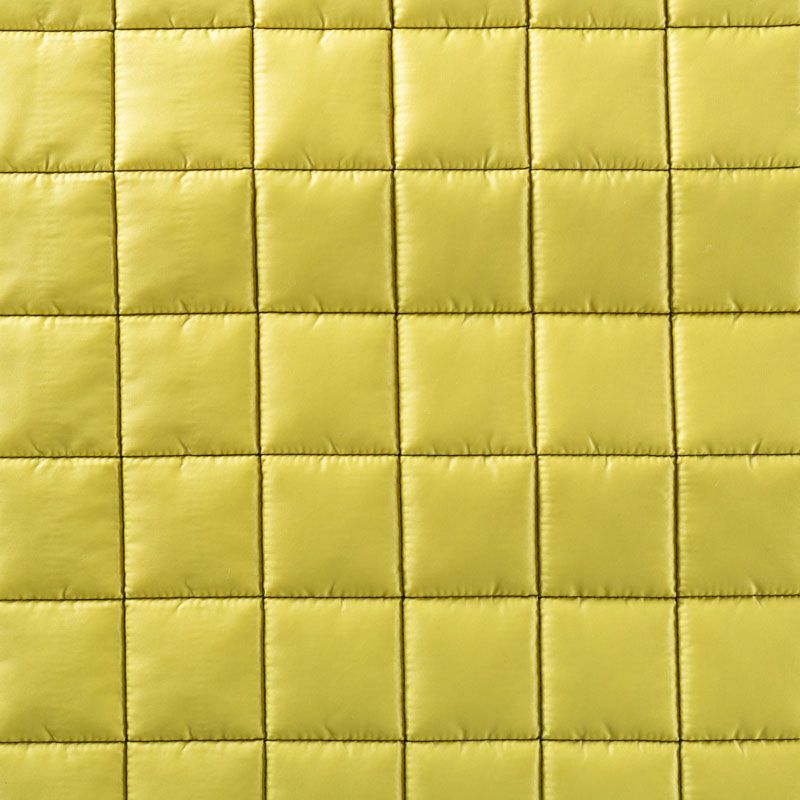 Трехслойная итальянская курточная ткань желто-зеленого оттенка, простеганная не крупными квадратами. Нижний слой черного цвета, заменяет подклад, средний слой - синтепон, верхний слой - матовый полиэстер, напоминающий болонь. Ткань легкая, пластичная, хорошо держит форму. Прекрасно подойдет для пошива легких пальто, курток, бомберов, жилетов, накидок-кейпов, объемных сумок, одежды для домашних питомцев, туристического снаряжения.